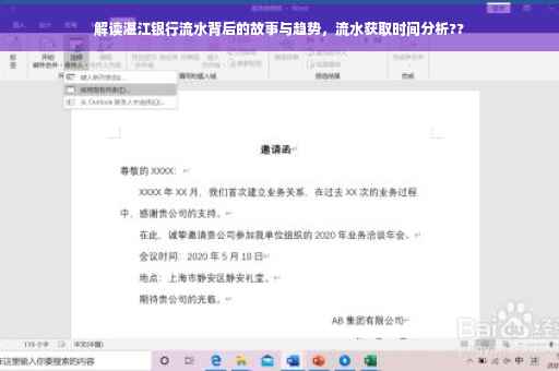 摘要:湛江银行流水背后反映了当地经济活动的趋势和故事。解读这些流水信息,可揭示经济发展动态。关于湛江办银行流水的时长,根据不同银行和流程有所不同。了解这一过程对于把握当地经济脉搏具有重要意义。通过银行流水,可一窥湛江经济的繁荣与发展趋势。