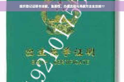 随着经济的快速发展,创业成为越来越多人的选择,在这个过程中,组织登记证明书成为了不可或缺的一环,本文将全面解析组织登记证明书的重要性、办理流程及相关注意事项,帮助创业者顺利完成组织登记,为事业奠定坚实基础。