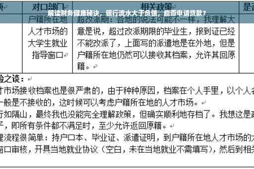 在当今社会,随着经济的发展和金融市场的繁荣,越来越多的人开始关注自己的财务状况,银行流水与负债的关系,直接关系到个人的经济安全和未来发展,本文将围绕“银行流水大于负债”这一主题,解读其内涵,分析其对个人财务健康的影响,并探讨如何实现银行流水大于负债,以帮助你实现财务自由。