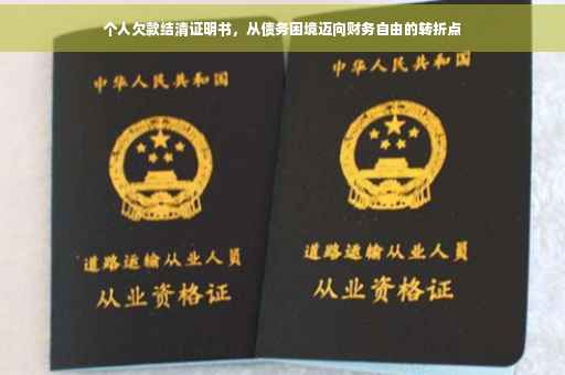 债务困境是一种挑战,但也是一种成长的机会,通过面对和解决债务问题,我学会了坚持、勇敢和负责任,面对债务困境时,要保持积极的心态,制定详细的还款计划,不要忘记寻求专业理财建议,合理规划个人财务,个人欠款结清证明书不仅是一张凭证,更是我们走向财务自由的重要里程碑,希望正在面对债务困境的朋友们能够从中获得启示,勇敢地走出困境,实现财务自由,也希望大家能够珍视个人欠款结清证明书这一重要成果,充分利用它带来的机遇和优势,迎接更美好的未来。