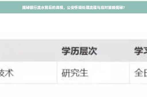 关于“公安对银行流水产生怀疑”的话题在网络上持续发酵,引发了广大民众和社会各界的广泛关注,银行流水作为个人或企业经济活动的真实记录,为何会引起公安部门的关注?背后是否隐藏着某些不为人知的秘密?我们将带您深入了解这一话题背后的真相,并探讨相关应对策略。