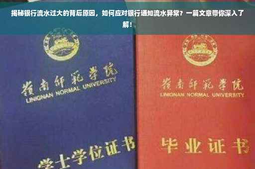 摘要:银行通知流水太大,意味着账户交易频繁或金额较大,可能引发银行关注或审核。这种情况可能由于多种原因造成,如正常业务增长、资金集中转入等。面对此情况,客户应保持冷静,了解银行流水审核标准,提供合理证明资料。本文旨在深入探讨银行流水过大的原因及应对策略,帮助读者更好地处理此类问题。