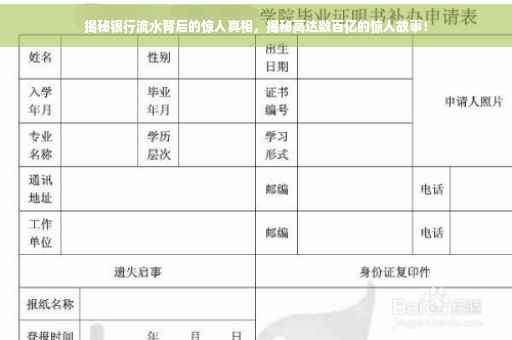 摘要:本文将揭示银行流水背后的惊人故事,涉及金额高达56亿甚至300亿的流水细节将被曝光。通过揭示这些数字背后的真相,让读者深入了解银行流水的奥秘,引发对金融领域透明度的思考。