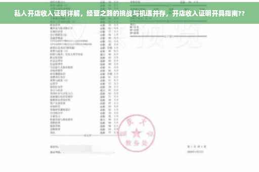 摘要:私人开店的经营之路充满挑战与机遇,收入证明是经营过程中的重要环节。本文将详细介绍私人开店的收入证明开具方法,包括收入构成、证明材料、注意事项等方面。通过了解收入证明的重要性及开具流程,有助于经营者更好地管理店铺,提高经营效益。面对市场竞争,经营者需灵活应对,把握机遇,实现经营目标。