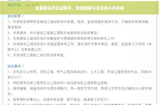 两证齐全证明书在保障个人权益、提高办事效率、维护社会秩序等方面扮演重要角色,日常生活中,我们应重视两证齐全证明书的办理与应用,确保个人身份和资格的真实合法性,希望通过本文的介绍,大家能对两证齐全证明书有更深入的了解,从而更好地保障自己的权益,安心生活。