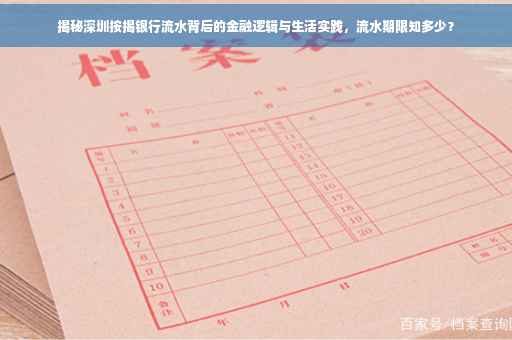 摘要:本文将探讨深圳按揭银行流水的金融逻辑与生活实践,揭示背后复杂的金融运作机制。文章将简要介绍按揭银行流水的重要性,所需时间以及实际操作中的注意事项。通过深入了解银行流水,帮助读者更好地管理个人财务,实现财务自由。