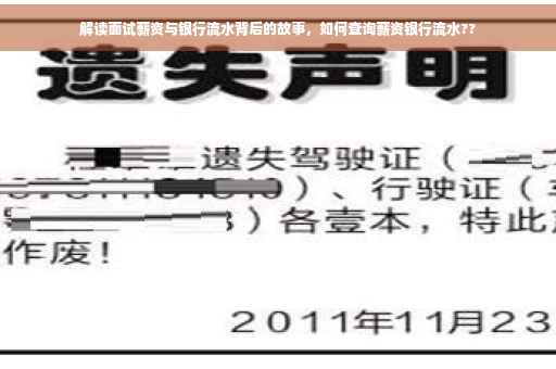 摘要:面试时,银行流水作为证明薪资水平的重要依据,其背后隐藏着求职者的财务状况和故事。本文将解读面试薪资与银行流水的关系,并介绍如何查询银行流水。通过了解银行流水的查询方法,求职者可以更好地准备面试,为自己争取到更合理的薪资水平。