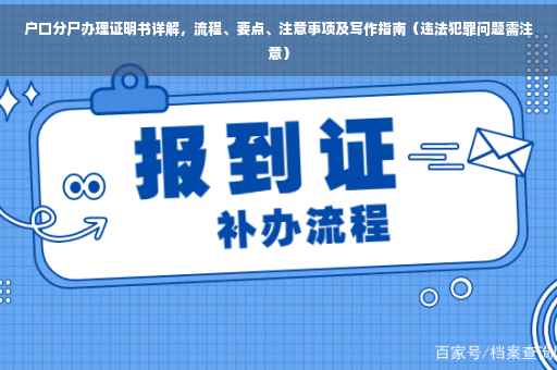 摘要:关于户口分尸办理证明书的流程、要点及注意事项,涉及违法犯罪问题。办理过程中需遵循法定程序,提供真实有效的证明材料。要点包括填写正确的个人信息、详细描述办理事项、加盖相关公章。注意事项包括防范诈骗、遵守法律法规,确保材料真实可靠。如需撰写证明书,应遵循规范格式,确保内容准确完整。