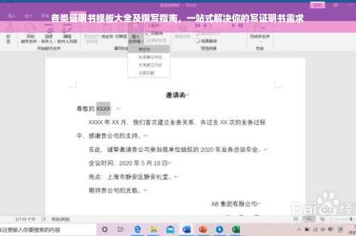 在现代社会,无论是学习、工作还是生活中,我们有时会遇到需要撰写证明书的场合,证明书是一种正式的书面文件,用于证明某件事情的真实性,由于不同类型的证明书涉及的内容和格式有所不同,很多人在撰写时常常感到困惑,本文将为您提供一份全面的写证明书模板,帮助您轻松应对各种场景下的证明书撰写需求。