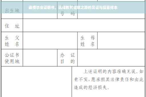 随着信息技术的飞速发展,远程教育逐渐受到越来越多人的关注和认可,函授作为远程教育的一种形式,为广大求学者提供了便捷的学习途径,本文将详细介绍函授毕业证明书的含义、作用,并结合实际案例,阐述如何撰写一份合格的函授毕业证明书。