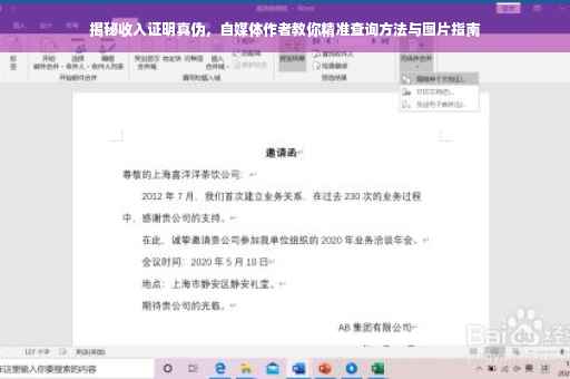 自媒体作者分享收入证明真伪识别技巧。教你如何精准查询收入证明真假,包括图片识别方法。通过简单易懂的方式,让你轻松掌握辨别收入证明真伪的诀窍,避免受到不必要的欺诈和损失。摘要字数在100-200字之间。
