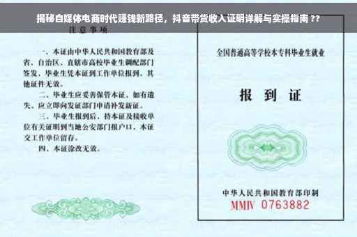 摘要:本文将介绍抖音带货收入证明的重要性和如何开具。随着自媒体电商时代的到来,抖音带货成为了一种新的赚钱方式。本文将指导读者如何获取抖音带货收入证明,包括具体的步骤和注意事项。通过本文的指导,读者可以更好地了解抖音带货的盈利模式,并成功开具收入证明,为自己的电商事业提供有力支持。