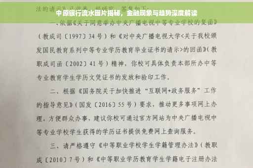 随着科技的飞速发展和数字化浪潮的推进,银行业作为金融体系的核心组成部分,正经历着前所未有的变革,中原银行作为其中的一员,其流水图片所反映的数据和业务动态,不仅关乎银行自身的发展,更是观察金融现象与趋势的重要窗口,本文将围绕中原银行流水图片,深入探讨其背后的金融现象及未来发展趋势。