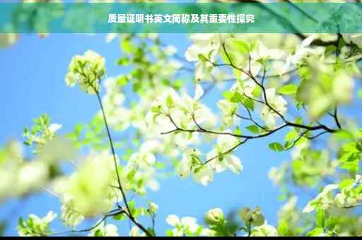 在全球化的背景下,国际贸易日益频繁,产品质量成为了企业生存与发展的关键,质量证明书作为证明产品质量符合相关标准和规定的重要文件,其英文简称为“Quality Certificate”,在国际贸易中扮演着举足轻重的角色,本文将对质量证明书英文简称进行详细介绍,并阐述其在企业运营中的重要性。