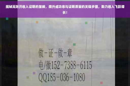 摘要:本文将揭示开收入证明的高效策略,包括提高成功率与证明质量的关键步骤。通过遵循本文的指导,您将了解如何有效地准备和提交收入证明申请,从而提高您的收入。本文将提供实用的建议和技巧,帮助您轻松应对收入证明申请过程中的挑战,确保您的申请得到批准并成功提高收入。