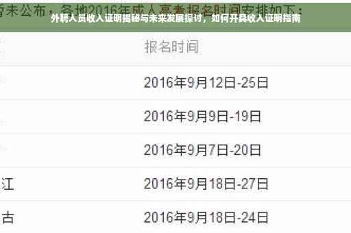 对于外聘人员而言,收入证明不仅是他们日常生活的一部分,更是他们职业发展和社会保障的重要保障,了解外聘人员的收入证明情况,对于企业和个人都具有重要的意义,它不仅关系到外聘人员的生活质量,更涉及到他们的职业声誉和未来发展空间。