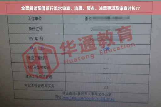 摘要:本文介绍了配偶银行流水审查的全面解读,包括审查流程、要点和注意事项。文章指出,配偶银行流水审查的时间因不同情况而异。审查过程中需注意资料准备、审查内容、审查标准等要点,以确保审查的真实性和准确性。也提醒读者注意事项,如保护隐私、遵守法律等。本文旨在帮助读者了解配偶银行流水审查的全过程,以便更好地应对相关情况。