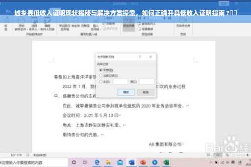 城乡低收入问题一直是社会关注的焦点,也是国家经济发展的瓶颈之一,随着城市化进程的加速,城乡差距逐渐扩大,低收入群体的生活压力日益加重,本篇文章旨在全面阐述城乡县低收入证明的重要性、现状、申请与核实流程、具体作用,以及解决这一问题的措施,揭示现状,探索解决方案。
