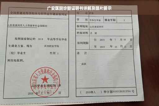 摘要:广安医院提供的诊断证明书详细解读,包括诊断证明书的图片。该证明书是广安医院针对患者健康状况所出具的重要文件。通过诊断证明书,患者可以了解自己的病情及治疗方案,同时也是请假、报销等事务的重要依据。