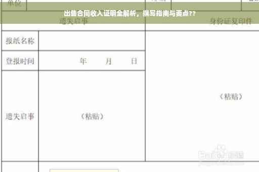 随着市场经济的发展,交易活动愈发频繁,出售合同作为买卖双方的重要约定,确保了双方的权益,在某些特定场合,如贷款申请、税务申报等,我们需要提供出售合同的收入证明,本文将深入解析出售合同收入证明的相关知识,助您更好地理解和应用。