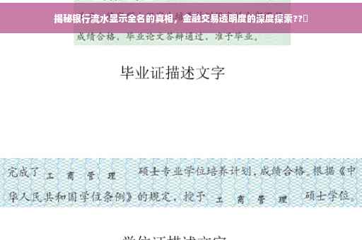 摘要:本文将揭示银行流水显示全名的秘密,探讨金融交易透明度的背后机制。通过解析银行流水显示全名的现象,文章将带领读者了解这一机制如何运作,以及它对于个人金融交易的影响。本文将揭开银行流水在金融交易中的重要作用,以及它如何帮助保障金融市场的透明度和安全性。