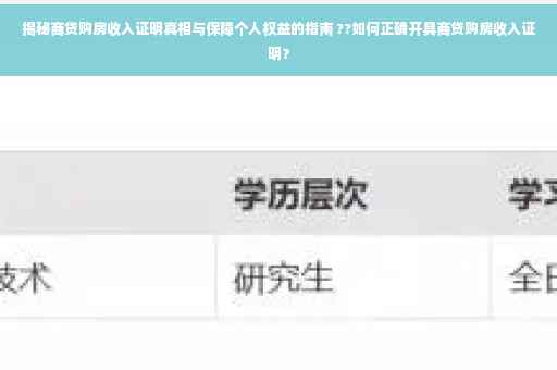 商贷购房收入证明是购房过程中的重要环节,购房者应充分了解其重要性及注意事项,本文旨在为广大购房者提供全面的商贷购房收入证明指南,希望能对您的购房之路有所帮助,在购房过程中,保障自己的权益至关重要,购房者应提高警惕,谨慎行事。