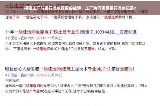 摘要:本文将揭示工厂与银行流水之间的故事。工厂需要银行流水的原因在于确保资金流转的顺畅,以支持生产运营和日常开销。银行流水作为评估企业信用状况和偿还能力的关键指标,有助于工厂获得贷款、扩大生产规模或进行业务合作。本文将深入探讨工厂如何利用银行流水进行财务管理,以及银行流水在工厂运营中的重要性。