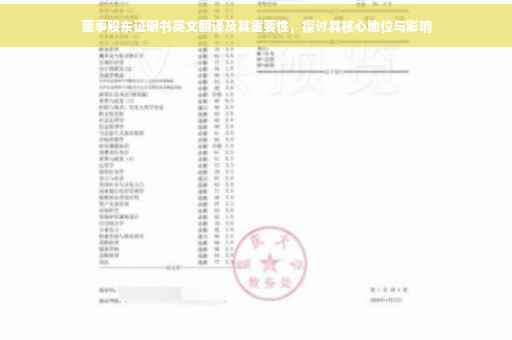 随着全球化进程的加速,国际间的经济合作日益频繁,越来越多的企业和投资者开始关注公司治理结构的规范性和透明度,董事股东证明书作为公司治理领域的一个重要文件,逐渐被广大投资者和企业所重视,本文将详细介绍董事股东证明书的英文翻译及其在实际应用中的重要性。