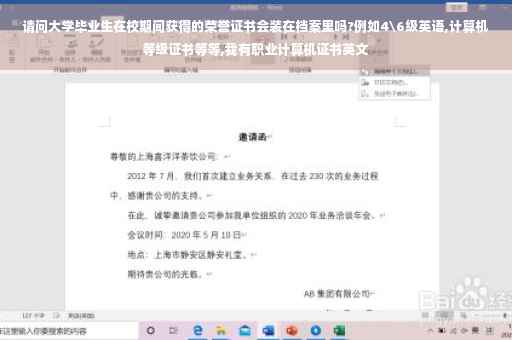 大学毕业生在校期间获得的荣誉证书会,例如4\6级英语,计算机等级证书等等.这些东东是国家认证的,当然会有记录的,当然不是把证书放在里面,放不下,但是里面有你的记录:如XX年,XX以XX分通过了国家英语四级等.但是另外的一种情况,如:你在学校的演讲比赛得奖,在作文大赛里面得奖,或者就是说班上或者社团里面获得奖,如果你上报了的话,会在你的每学期的记录上获奖情况那一栏有的,如果没有上报的话就没有了.学校现在应该都有素质拓展的认证吧,上面有详细的记录.北京反正基本的学校都有!放心吧,四六级,计算机啊是有的!!!:)