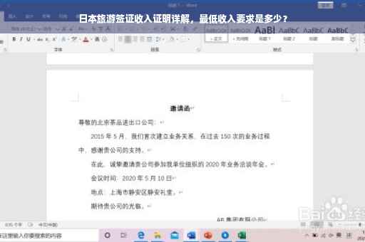 摘要:本文将详细介绍日本旅游签证所需的收入证明,包括收入证明的种类、要求以及最低金额等。想要前往日本旅游的人士需要了解,申请签证时提供的收入证明是评估个人经济能力的重要依据。本文将为您解析收入证明的各个环节,助您顺利获得日本旅游签证。