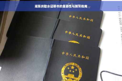 随着农业生产的不断发展,水资源的管理与利用愈发重要,作为农业生产中重要的水源之一,灌溉井的取水活动需要得到规范和管理,为此,灌溉井取水证明书的撰写与办理成为一项关键任务,本文将详细介绍灌溉井取水证明书的含义、作用、内容要点以及办理流程,以帮助广大农户和企业更好地理解和运用。