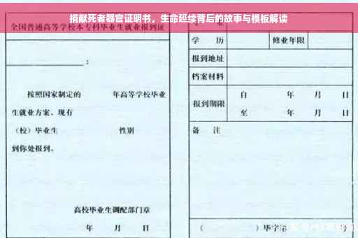 摘要:捐献死者器官证明书是一份重要的法律文件,它记录了生命延续背后的感人故事。这份证明书模板旨在确保捐献过程合法、透明,并尊重捐献者的意愿。通过捐献器官,逝者得以在生命结束后继续帮助他人,传递爱与希望。这一过程需要严谨的法律证明和家属的积极配合,以确保器官捐献的合法性和顺利进行。