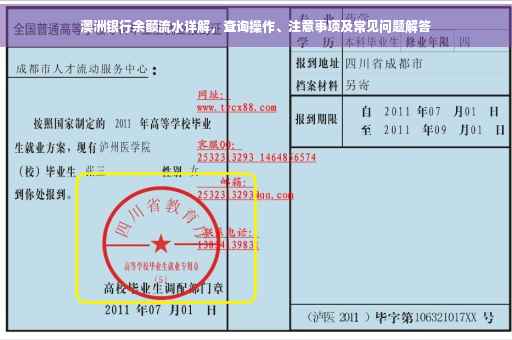 摘要:本文将详细介绍澳洲银行余额流水的查询方法,包括操作过程和注意事项。针对常见问题进行解答,如如何查看银行流水、查询过程中可能遇到的问题等。帮助读者更好地管理个人财务,确保资金安全。