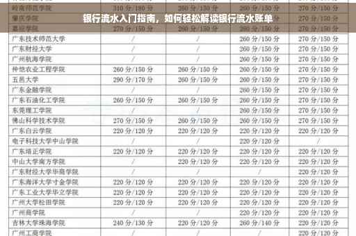 随着个人财务管理的日益重要,银行流水作为记录个人或企业资金交易的重要载体,其解读成为一项关键技能,本文将详细介绍银行流水的构成、解读技巧及注意事项,助您轻松掌握这一财务基础技能。