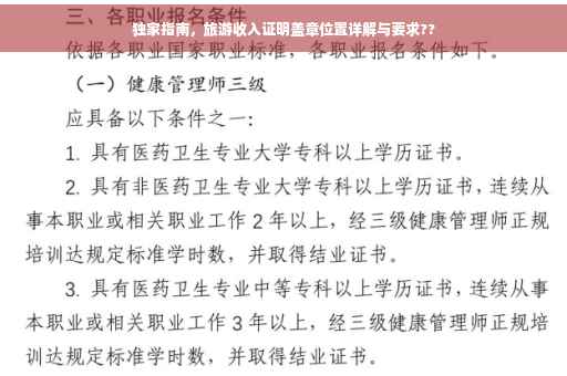 随着旅游业的蓬勃发展,越来越多的人投身于旅游行业,并以此为生,在申请贷款、信用卡或处理其他行政事务时,旅游收入证明成为了展示经济能力的重要文件,本文将全面介绍旅游收入证明的相关知识,特别是关于盖章位置的重要性及其规范。