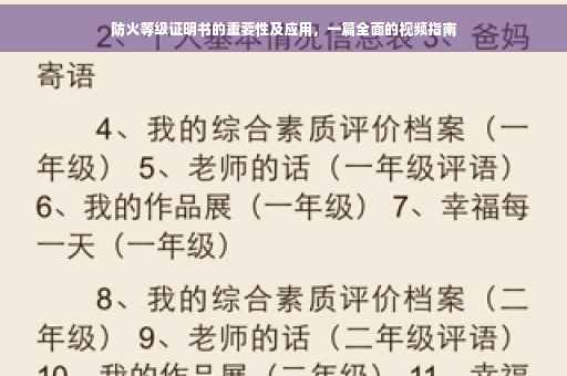 在当今社会,防火等级证明书的重要性日益凸显,无论是建筑物、电子产品还是其他各类设备和材料,其防火性能直接关系到人们的生命财产安全,了解防火等级证明书的相关知识,对于保障公共安全、维护社会稳定具有重要意义,本文将通过视频的形式,带领大家深入了解防火等级证明书的相关内容。