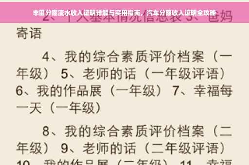 随着生活水平的提高,汽车已成为许多家庭的日常出行必备,丰田,作为全球知名的汽车品牌,以其卓越的产品性能和良好的口碑,赢得了广大消费者的信赖,许多消费者选择通过分期付款的方式购买丰田汽车,而在申请丰田分期购车的过程中,收入证明是不可或缺的一环,本文将全面解析丰田分期流水收入证明的相关内容,助您轻松购车,实现汽车梦想。