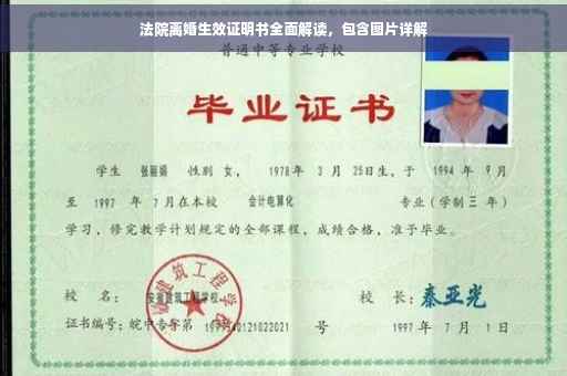 摘要:本文将详细介绍法院离婚生效证明书的相关内容,包括其含义、作用以及获取方式等。还将提供法院离婚生效证明书的图片以供参考。该证明书是离婚案件中的重要法律文件,证明离婚判决已经生效,具有法律效力。本文旨在帮助读者了解并正确获取该证明书,以维护自身合法权益。