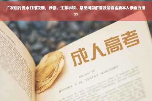 摘要:,,本文介绍了广发银行打印流水的详细步骤、注意事项以及常见问题的解答。包括是否需要本人亲自办理。文章简明扼要,方便用户快速了解如何打印流水,并注意相关事项,解决可能遇到的问题。