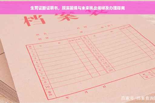 摘要:生育证断证明书反映了当前社会面临的生育难题和挑战。办理生育证断证明书是应对这些问题的关键步骤之一。本文将概述生育证断证明书的重要性,介绍办理流程,并强调面对现实困境和未来挑战时,需采取积极措施以应对。