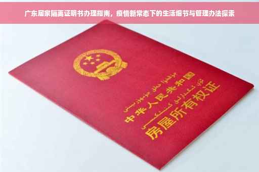随着新冠疫情的加剧,广东省作为我国的经济大省和人口密集地区,积极响应国家防疫政策,采取了一系列有效措施应对疫情,居家隔离作为重要的防疫手段之一,在广东得到了广泛实施,而广东居家隔离证明书则是这一防疫措施的重要组成部分,其价值与重要性不容忽视。
