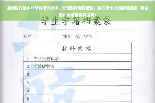 摘要:本文将探讨银行流水账单背后的故事,揭示其重要性以及如何亲自打造个人财务健康蓝图。我们将解答一个常见问题:打印银行流水账单时是否必须携带身份证。通过了解这些财务知识,读者可以更好地管理自己的财务,实现财务健康。