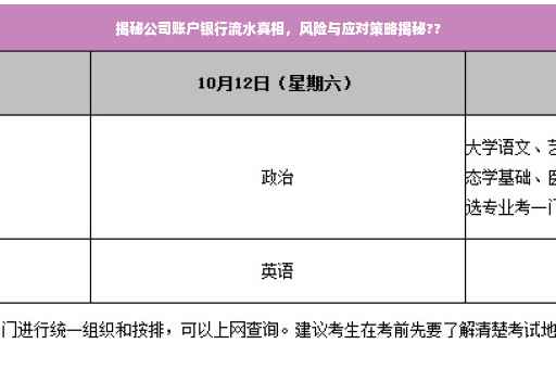 在当今商业环境中,公司账银行流水作为企业经营状况的重要指标之一,越来越受到各方的关注,从投资者到金融机构,从合作伙伴到政府部门,都对企业的银行流水记录保持着高度的重视,在这一背后,隐藏着怎样的真相?又该如何应对可能出现的风险?本文将为您揭开公司账银行流水的神秘面纱,揭示其背后的真相,并探讨应对策略。