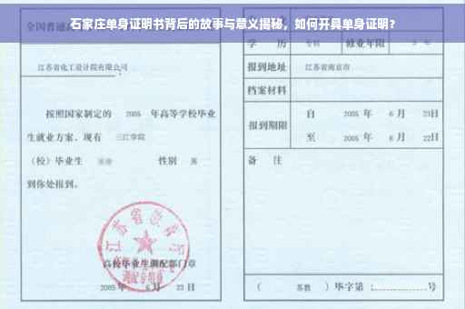 石家庄的单身证明书不仅是现代社会的一种证明文件,更是反映了现代社会的变迁和进步,通过深入了解单身证明书的相关知识和背景,我们能更好地认识现代社会中的单身现象以及婚恋观念的变化。