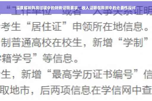 三. 购房过程中收入证明的具体要求