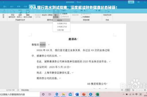 在当今社会,随着金融科技的飞速发展和个人理财观念的日益增强,个人银行流水已经不仅仅是一张简单的交易记录清单,它更多地反映了我们日常生活中的收支状况、消费习惯以及财务健康状态,本文将详细解读个人银行流水测试的重要性,帮助你通过银行流水分析自己的财务状况,实现理财目标。