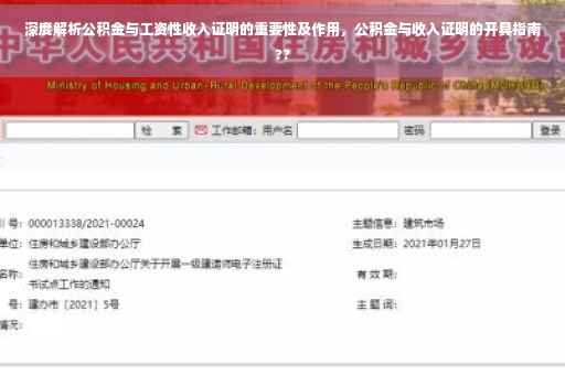 在当今社会,随着经济的迅猛发展和就业市场的繁荣景象,公积金与工资性收入证明在人们生活中所扮演的角色愈发重要,深入理解这两者的重要性及其作用,对于个人的生活品质、职业发展以及社会信用体系建设都具有深远影响。
