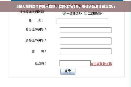 摘要:购房时涉及大额银行流水,其背后真相及权益保障至关重要。查询购房银行流水大额可通过网银、手机银行或柜台办理。了解流水明细,确保资金安全,防范潜在风险。如发现问题,及时与银行沟通,维护自身权益。购房者在关注房产本身的同时,也需关注银行流水等财务问题,确保购房过程透明合法,保障自身权益不受侵害。