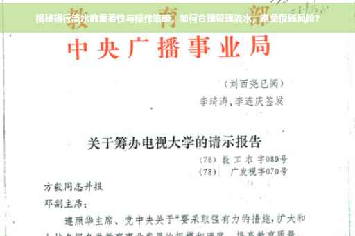3、定期整理银行流水:定期整理银行流水,及时发现并处理异常交易,确保银行流水的真实性。