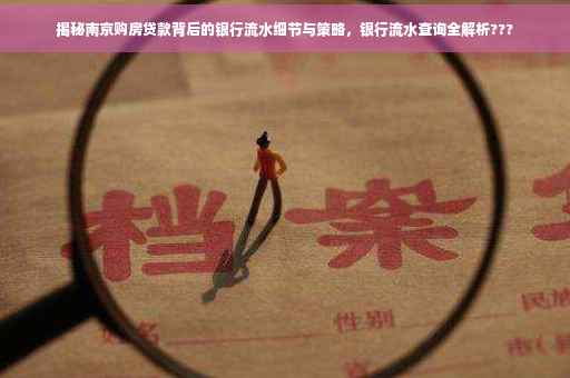 摘要:本文将揭示南京购房银行流水的重要性,解读购房贷款背后的细节与策略。通过查询银行流水,了解个人财务状况和信用评级,从而选择最合适的购房贷款方案。本文旨在帮助购房者明智决策,顺利购房。